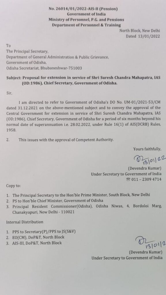 ୬ ମାସ ବଢିଲା ମୁଖ୍ୟଶାସନ ସଚିବଙ୍କ କାର୍ଯ୍ୟକାଳ