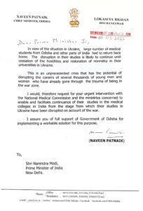 ଓଡ଼ିଶାର ବହୁ ଛାତ୍ର ଛାତ୍ରୀ ଡାକ୍ତରୀ ପାଠ ପଢ଼ିବା ପାଇଁ ୟୁକ୍ରେନ ଯାଇଥିଲେ । ସେଠାରେ ଭୟଙ୍କର ଯୁଦ୍ଧ ପରିସ୍ଥିତି ଉପୁଜିବାରୁ ସେମାନେ ଫେରିଆସିଛନ୍ତି । ଭାରତ ସରକାରଙ୍କର ଅପରେଶନ ଗଙ୍ଗା ଦ୍ୱାରା ବର୍ତ୍ତମାନ ସୁଦ୍ଧା ୨ଶହରୁ ଉର୍ଦ୍ଧ୍ବ ଓଡ଼ିଆ ଛାତ୍ରଛାତ୍ରୀ ଆସି ଓଡ଼ିଶାରେ ସୁରକ୍ଷିତ ଭାବରେ ପହଞ୍ଚିପାରିଛନ୍ତି । ବର୍ତ୍ତମାନ ଏହି ଛାତ୍ରଛାତ୍ରୀଙ୍କ ଭବିଷ୍ୟତ ଅନ୍ଧକାର ହେବକୁ ବସିଛି। ସେଥିପାଇଁ ମୁଖ୍ୟମନ୍ତ୍ରୀ ଏହି ପିଲାଙ୍କ ପାଠପଢାର ବନ୍ଦୋବସ୍ତ କରିବା ପାଇଁ ପ୍ରଧନମନ୍ତ୍ରୀଙ୍କୁ ଚିଠି ଲେଖିଛନ୍ତି।