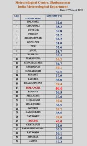 ଭୁବନେଶ୍ୱର: ଆଜି ପୁଣି ବଲାଙ୍ଗୀର ସହର ସବୁଠାରୁ ଉତ୍ତପ୍ତ ସହର। ବଲାଙ୍ଗୀରରେ ୪୦.୬ ଡିଗ୍ରୀ ତାପମାତ୍ରା ରେକର୍ଡ କରାଯାଇଛି। ଯାହାକି ରାଜ୍ୟର ସବୁଠୁ ଉତ୍ତପ୍ତ ସହର। ୮ ସହର ରେ ୩୯ ଡ଼ିଗ୍ରୀ ଠାରୁ ଅଧିକ ଦିନ ତାପମାତ୍ରା ରେକର୍ଡ ହୋଇଛି। ବୌଦ୍ଧ ରେ ୪୦.୦ ଡ଼ିଗ୍ରୀ ରେକର୍ଡ ହୋଇଛି। ଭୁବନେଶ୍ୱର ୩୬.୨ ଡ଼ିଗ୍ରୀ ଏବଂ କଟକ ଠାରେ ଦିନର ଦିନ ତାପମାତ୍ରା ୩୭.୮ ରେକର୍ଡ କରାଯାଇଛି।